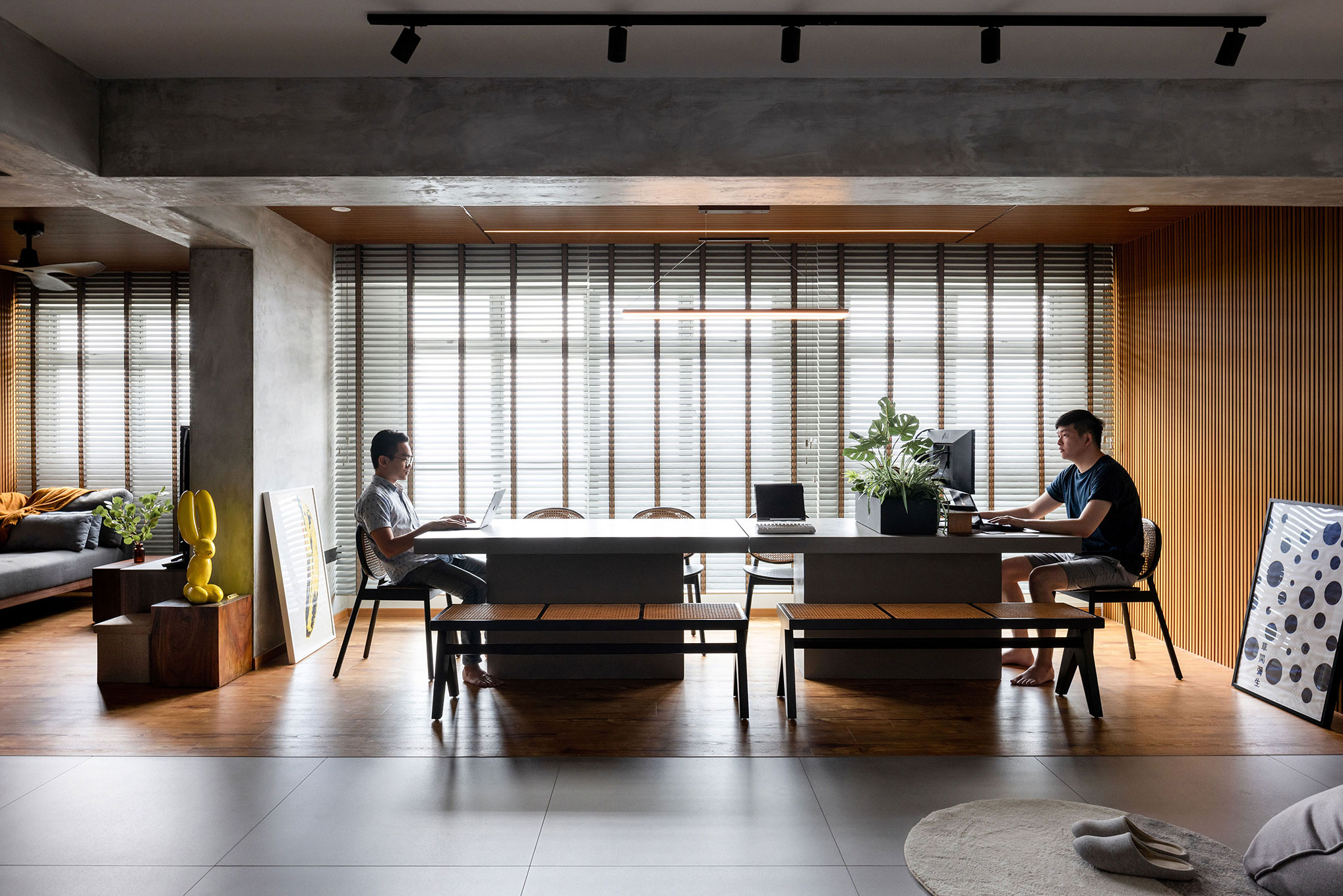 Welcome to a contemporary masterpiece where industrial rawness, modern simplicity, and retro charm converge. This uniquely designed space combines the best elements of various styles to create an environment that is both dynamic and inviting.