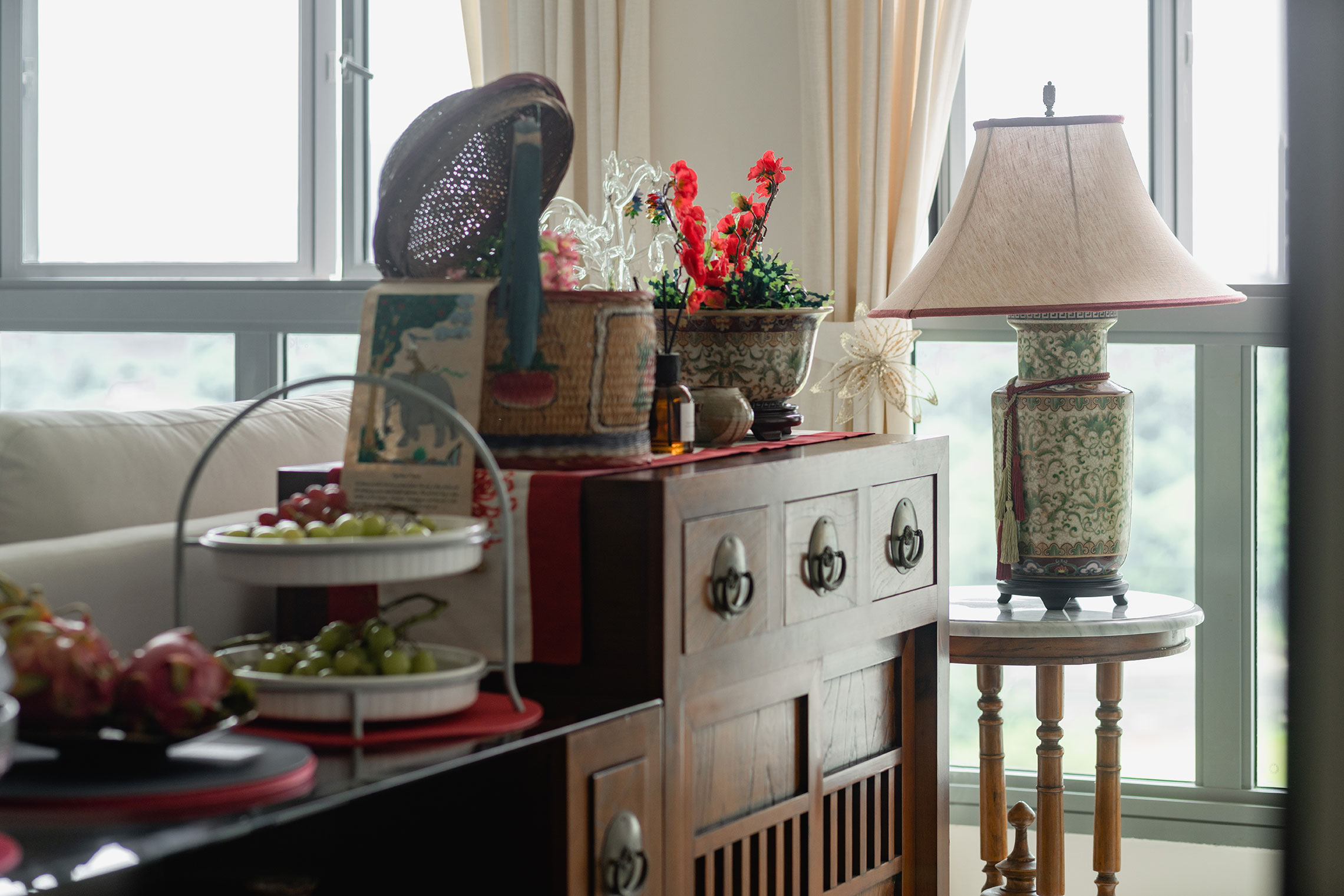 Step into a beautifully curated Singapore HDB 5-room BTO flat where East meets West in a stunning fusion of styles. This unique home seamlessly combines antique and eastern-inspired furniture with classic English elements, creating a space that is both timeless and contemporary.