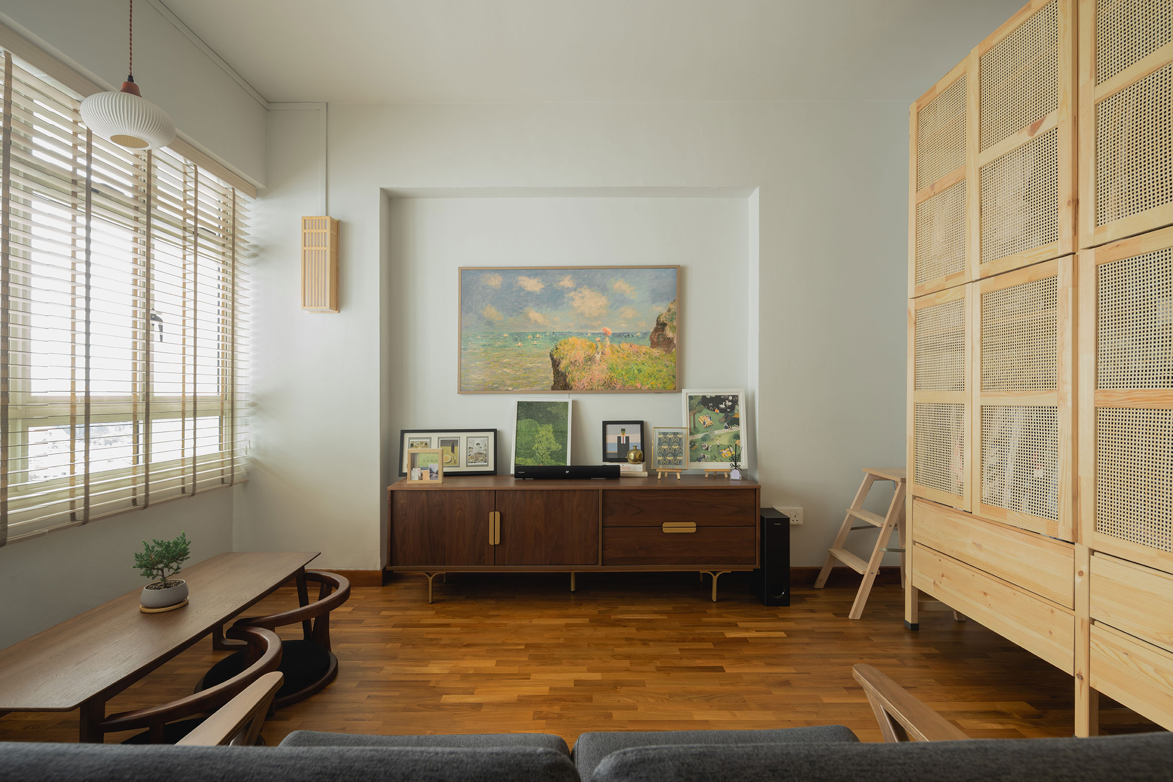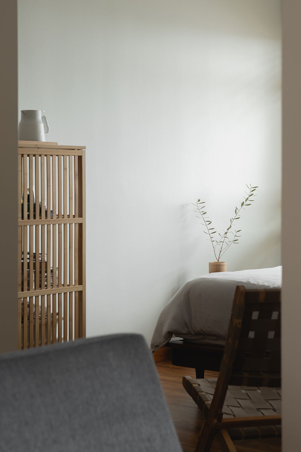 Welcome to a tranquil haven where Japanese minimalism meets Scandinavian simplicity. This thoughtfully designed space merges two distinct yet harmonious styles, creating an environment that is both peaceful and functional.