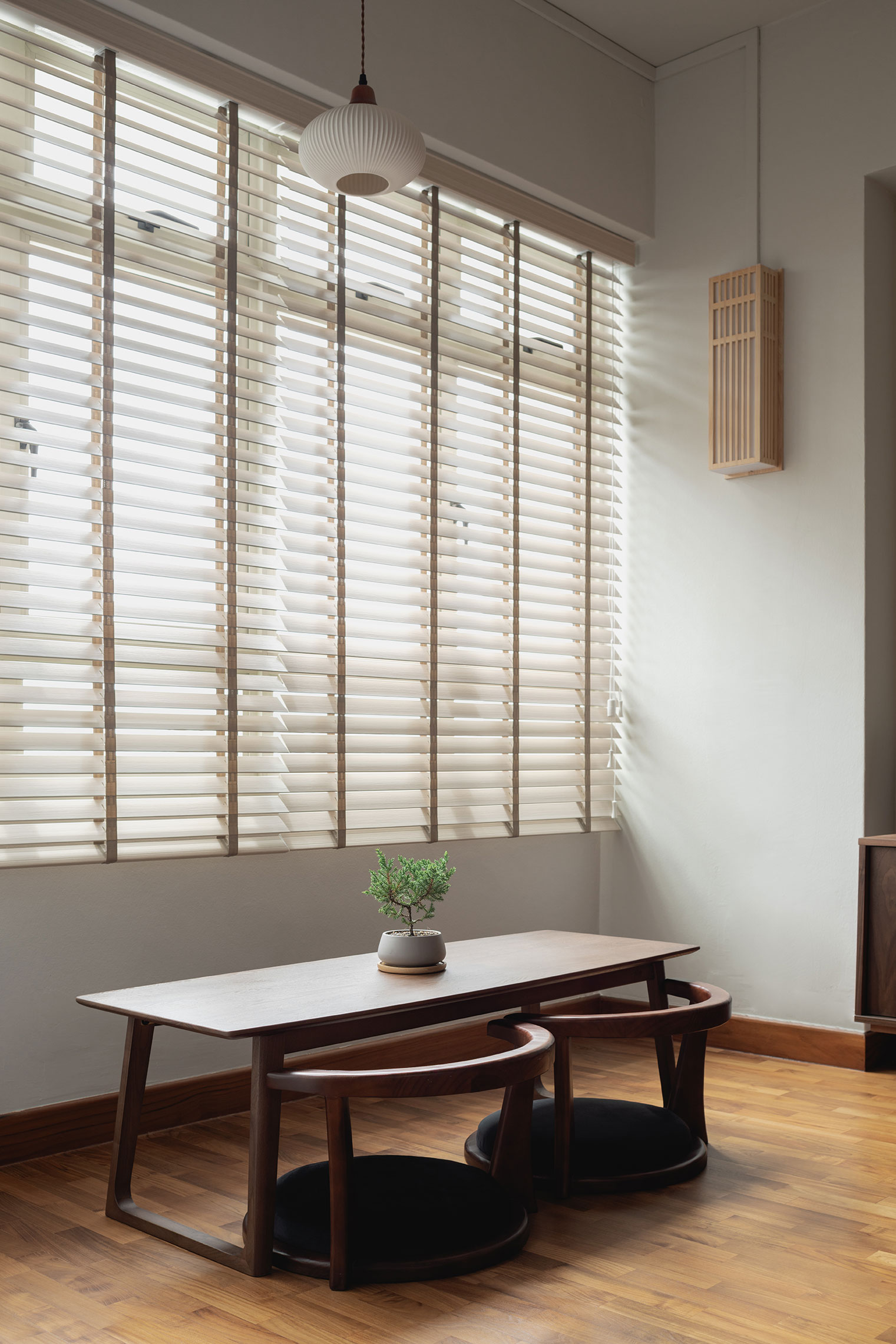 The design draws heavily on Japanese interior principles, featuring traditional elements such as floor chairs and louvered wardrobes. These pieces embody the elegance of simplicity, offering a serene and uncluttered aesthetic that promotes relaxation and mindfulness.
